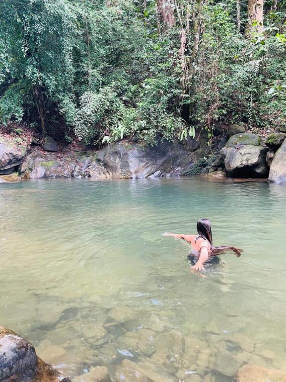 Little paradise in the jungle with riverpond with giant rock boulders and a beautiful garden