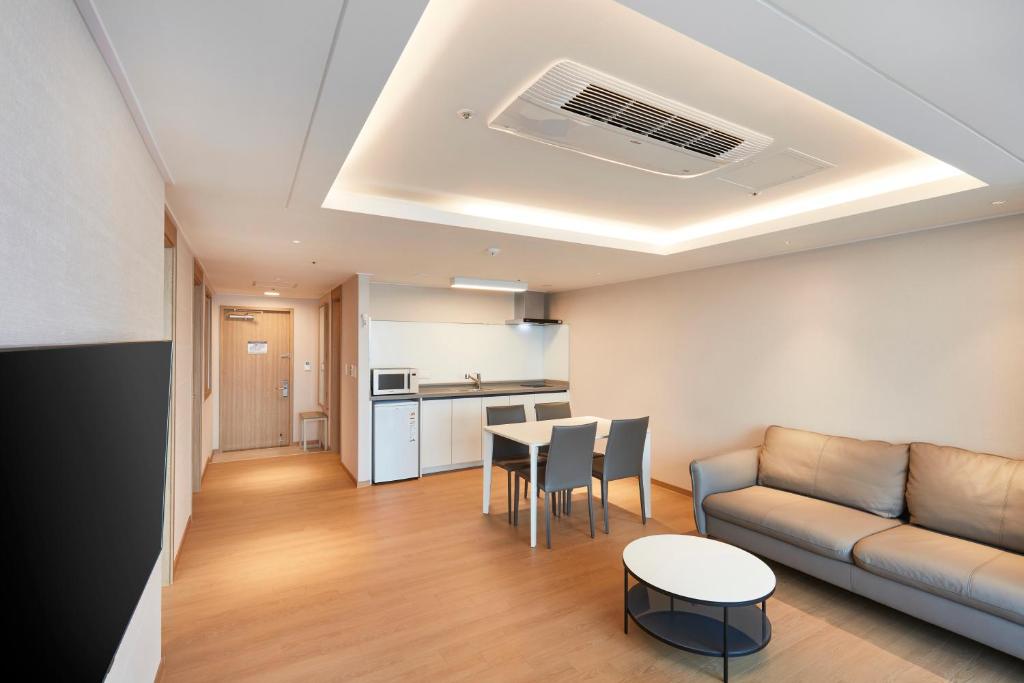 Discover a variety of elegant accommodations at Kumho Tongyeong Marina Resort, designed to cater to different guest needs and preferences. The Family Deluxe offers a spacious 53 square meters with a comfortable double bed, perfect for families seeking ample space. For those desiring more room and luxury, the Suite Deluxe spans 91 square meters with a plush double bed, providing an elevated experience. Guests looking for versatile bedding arrangements can choose the Family Premier, also 53 square meters, with either a double bed or two single beds, ideal for both families and groups. The Suite Premier, at 91 square meters, features two single beds, offering a sophisticated option for travelers seeking a bit more space and privacy. For the ultimate in comfort and grandeur, the Royal Suite boasts an impressive 201 square meters, equipped with a double bed, two Japanese futons, and additional sleeping arrangements, perfect for those seeking a luxurious retreat.