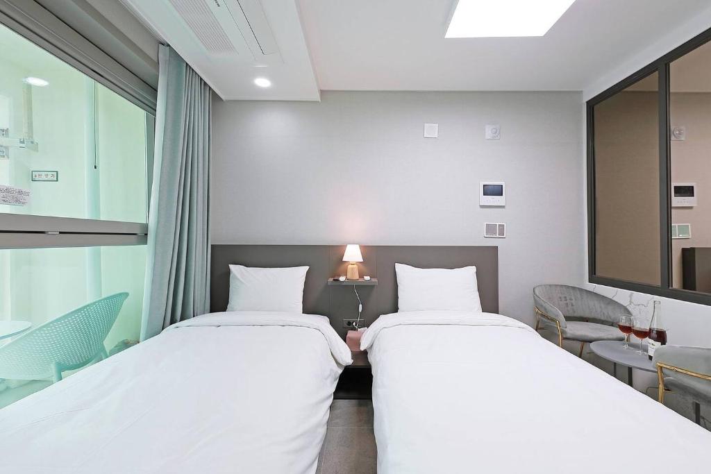 My son lives abroad, and while I was urgently booking accommodation in Busan for him to travel with his foreign friends, I encountered an unfortunate situation where another place unilaterally canceled the reservation. My son and his friends found themselves in a situation where they couldn't enter and had to wait outside, so I urgently booked three rooms. It was really stressful, and since it was the same day, it was hard to find places with available rooms. As soon as I made the reservation, I called to confirm it, and the person on the other end was very kind, confirming the reservation but mentioning that they could only assign two rooms on one floor and one room on another floor... However, later I found out that they had assigned all the rooms on one floor, and the room with a great view of the sea was designated for them, so the college students had an amazing time. Especially when there was an issue with drying their swimsuits later, the staff was very kind and helped them until the end. Even when they checked out and returned to the room for a friend's forgotten belongings, the staff was very kind, reassuring the kids and helping them find the items. You might remember that there were six foreign kids who came, and I want to sincerely thank the staff members who answered the reservation confirmation call that day, as well as those who helped with the swimsuit drying issue and retrieving the forgotten items after check-out. My son's friends had a terrible experience the day before at a motel in Gwangalli, where they encountered rudeness and unkindness with an abrupt cancellation, leading them to say that Koreans are very rude and scary... But thanks to the excellent room environment, cleanliness, and the wonderful view of the sea, along with the incredibly kind staff, my son felt proud and not embarrassed at all. In the end, I think the strange cancellation ended up being a blessing in disguise by leading us to such a good place and meeting such wonderful staff. I truly appreciate it, and I am immensely grateful to the staff for their kindness. When I go to Busan, I will definitely recommend this place everywhere and I will go back as well. It was a perfect place. Thank you so much!!!!!!!!!!!!