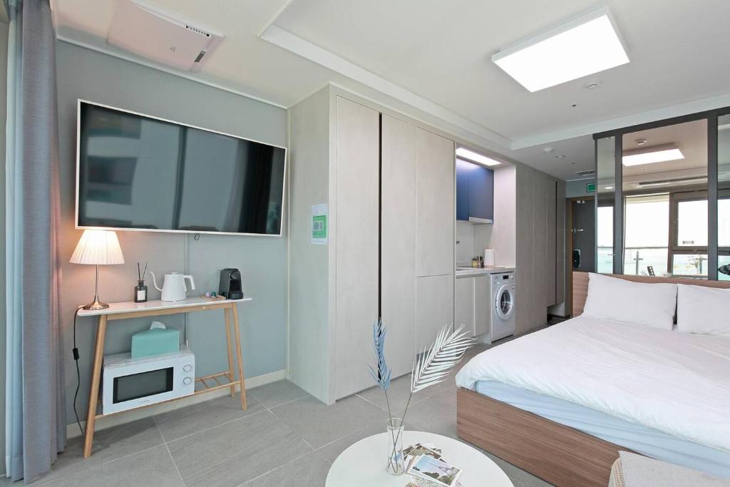 This building is the same as Hyoi Stay but different management. Although we gotten ourself the most expensive room but it is not entirely an enjoyable experience. We gotten room 307 which is level 3 - one level directly above a BBQ restaurant. Meaning when u open the door and step out for the scenery, all you can is oil and bbq smell. You wouldnt want to sit at the balcony for long even though with the beautiful lighted bridge at your doorsteps. The concierge is located at the last floor of the building. They cant speak English well. When we asked if they can assist us to buy sky capsule tickets they just answered no, when we ask why she kept us standing aside asking us to wait, and continuously attended other people and picking up calls in front of us. Not my professional and helpful in my opinion. They only provide 2x face towel. Which is very inconvenient. Yes there is no long bath towel. Meaning is like a water ration kind. The pillow is SO soft like your neck doesnt get any support at all. I woke up with stiff neck and shoulder ache upon the first morning. The sofa doesn’t come with full back support like u see in the picture, so after a long day it is very uncomfortable sitting at the sofa. You cant rest ur neck or upper back to sit down and relax while watching TV. Instead is quite straining. There are limited mirrors in the room, doing makeup is quite cumbersome, there is well lighted area for it. The TV is defaulted in korean and there is no instruction to change language, aint foreigner friendly. What I like about the Airbnb: The kitchen is fully equipped. They provide hair straighteners. The morning view is still enjoyable less the noise and smell from the below restaurant. 7-11 is just opposite the apartment (20-30meters away). There are many sockets available for charging ON THE FLOOR. The light switch control panel is user friendly. You can buy detergent from the concierge for washing of clothes inside your room. The fridge is like a standard household fridge, you can store many food and drinks in it. Will be even better if there is a mircowave oven. They provided in room rubber slippers. If you like a balcony stay like me, there isnt much choice on gwangalli beach. If it is a higher level stay, probably could sweeten a little. But for sure, am not going to be back.