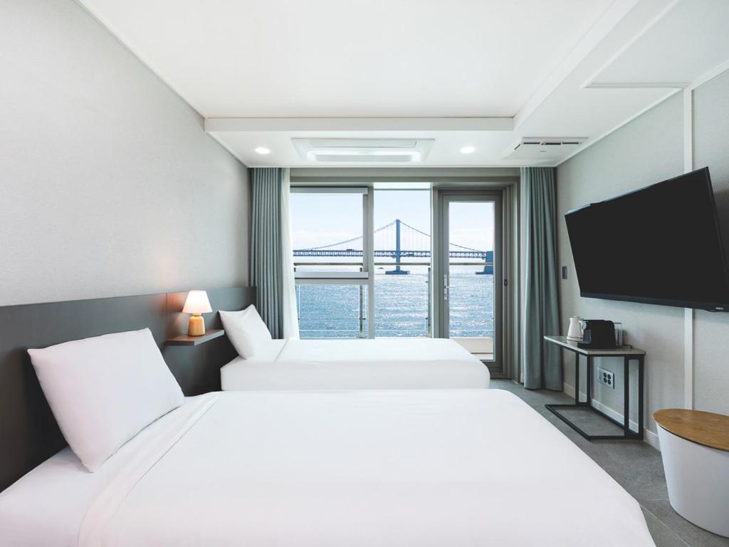Indulge in comfort and soak in breathtaking panoramic views of Busan's iconic Gwangan Bridge at Elmomento Gwangan hotel&Residence. Offering a range of thoughtfully designed rooms, including the Panorama Room, this hotel ensures a memorable stay for every guest. With 23 square meters of space and a plush Queen Bed, the Panorama Room provides a cozy retreat after a day of exploring the vibrant city. Book your stay on Agoda and enjoy the best prices, guaranteeing you exceptional value for your money. With Agoda's hassle-free booking process, securing your dream room at Elmomento Gwangan hotel&Residence has never been easier.